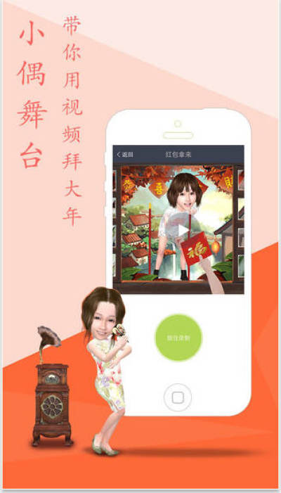 在小偶舞台,你可以用自己的小偶当主角,制作拜年视频和逗趣动画啦!