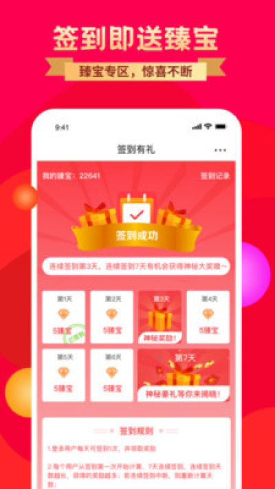 5. 签到领臻宝:每日App内签到,天天签到,天天换优品。