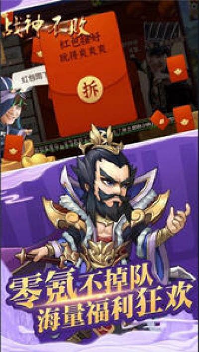 战神不败勇冠三军手游是一款2020最火爆的三国横版卡牌手游,游戏完美还原了三国真实战场,融合了RPG玩法元素,搞笑的剧情,上线还送VIP福利礼包!喜欢就速速来下载吧!