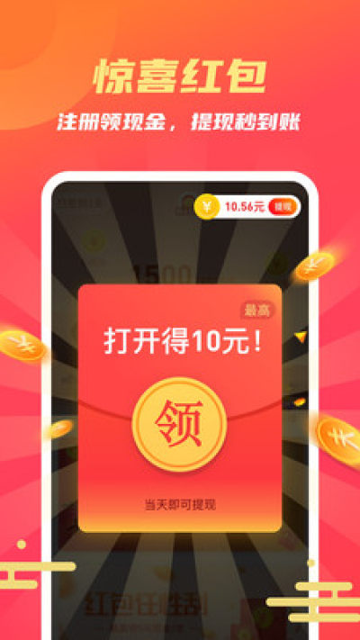 【新用户特权】新注册用户无门槛领现金大红包,最高得10元。