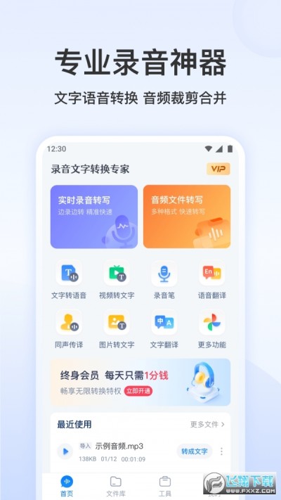 录音文字转换专家永久免费版是款全新的永久免费版本的录音文字转换助手,在这款app中用户可以在线使用各种功能来转换,而且小编今天带来的就是全新的2023版本的免费版本,喜欢的小伙伴快来下载试试吧!