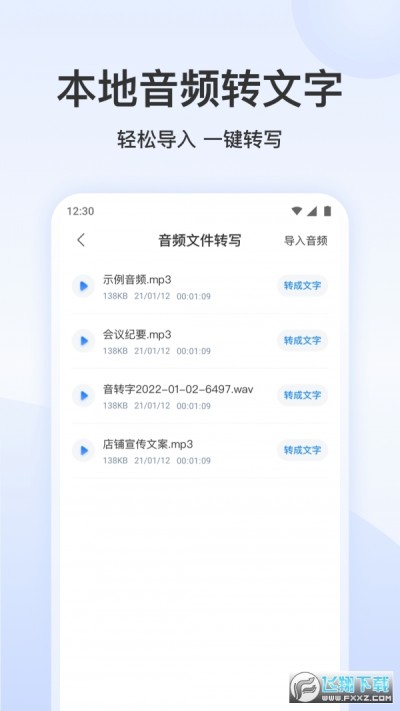 支持mp3、wav、m4a、aac、amr、flac等格式的音频文件互相转换格式,转换过程快速(秒级),转换后可实现快速转换文字;