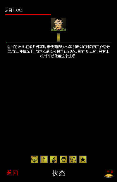 敌军会从战场上方袭来,每通过一个敌人,屏幕下方会出现一个铁十字标志,如果有10个敌人通过,则游戏结束。你作为守方的指挥官,可以调遣士兵进入战场、构筑工事等,这一切都要消耗TP点数。每防御住一波敌军,增加1TP。战场地图也是随机生成的,每次进入都不一样。