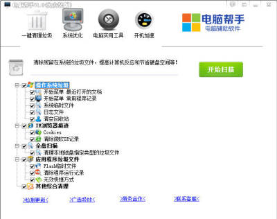 电脑帮手是一款非常简单但是功能很强大的电脑系统辅助工具,该软件具有一键清理垃圾、系统优化、电脑使用工具、开机加速等功能,这可以帮助我们为电脑提高开机速度和运行速度。