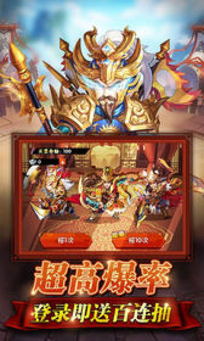 2、充值比例1:1000,首充1:3000,首充即送红将林冲,全套紫装,还有280充值卡!超强战力助你乱世无双