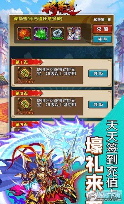 5.VIP每日福利,每日签到领充值卡,元宝满满、物质满满,助主公闯荡三国。