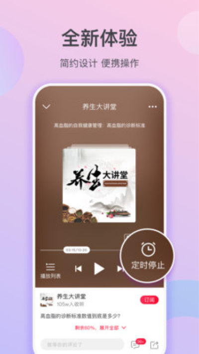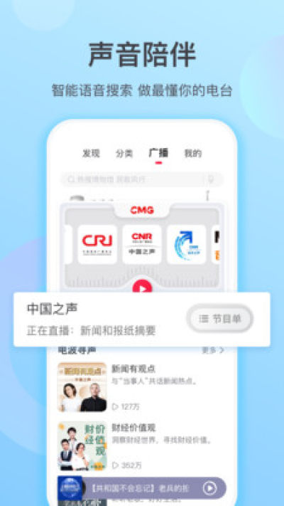 云听乐龄版app是专为中老年用户打造的音频客户端,根据用户的收听习惯提供相关的优质内容和使用功能,全天候各个时间段都有精彩的内容可以在线收听哦,而且使用方便,很快就能习惯操作,有需要就下载云听乐龄版app吧。