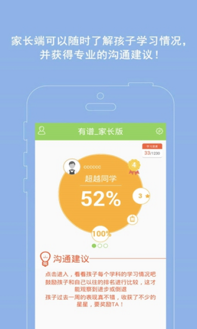 家长用有谱,可以方便快捷地了解孩子的学习情况,并获得沟通建议,从此可以有效管理孩子的学习!