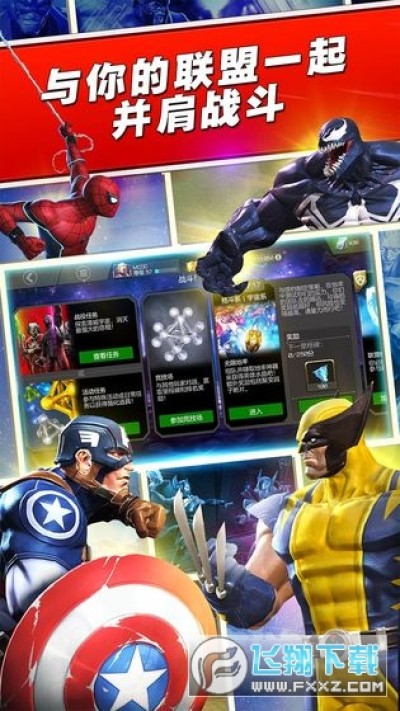 漫威超级争霸战是一款著名漫画改编的动作手游,漫威超级争霸战游戏登场人物有美国队长、蜘蛛侠、钢铁侠、黑寡妇、奇异博士和女浩克等漫威漫画中的角色,漫威超级争霸战还将在每日竞赛环节融入漫威的故事线,喜欢漫威超级争霸战的朋友赶紧下载吧