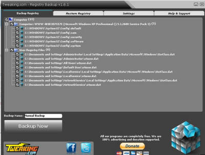 运行这个软件后,点击界面中的“backup now”按钮就可以进行备份操作,如果是备份整个注册表的话,那么可能需要你等待十几秒钟。