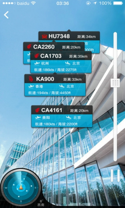 你可以通过百度天眼,随时随地看到全中国飞机的实时飞行动态、航班详情,享受和塔台工作人员一样的检测飞机的体验。