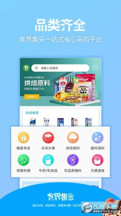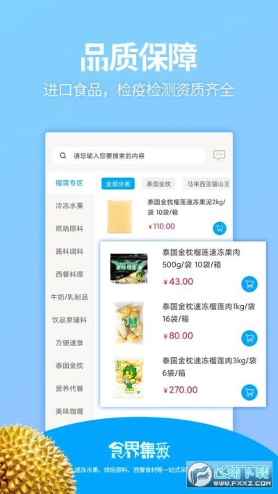 商品涵盖:网红美食、速冻榴莲、速冻水果、时令水果、西餐烘焙原料、酱料调味料、米面粮油、进口肉食、进口水产、乳奶制品、速食冲饮等。