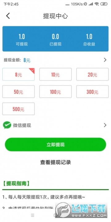 首次满8元即可提现,之后永久满10元提现,提现会在24小时内到账