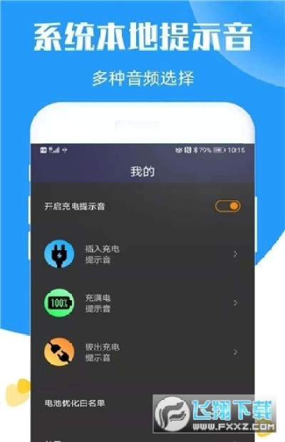 这里你可以选择不同的提示音也可以设置一个自己的声音,在每次充电时都会给你不一样体验;