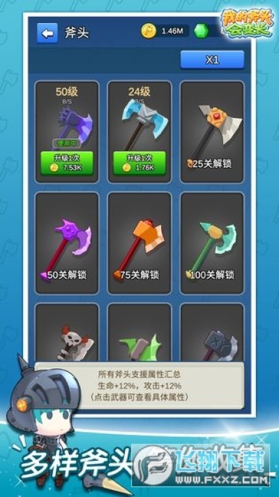 游戏中有多样的斧头可供玩家收集,每把斧头都有自身独有的效果