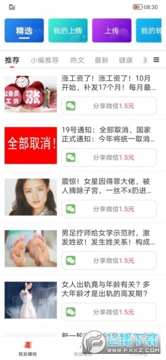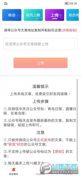 1、新用户下载注册人气转app就送1元,转发文章单价全天1.5元/次,支持导入文章