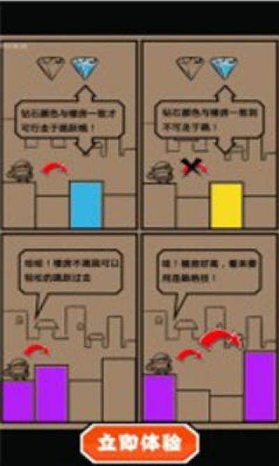 1、手指触控控制小偷跳跃到与钻石一样颜色的楼房