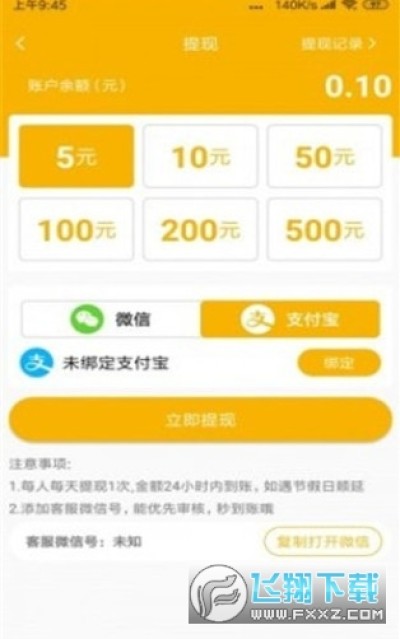 收益永久满5元提现,支持提现到微信或支付宝,提现一般秒到账,最晚不超24小时