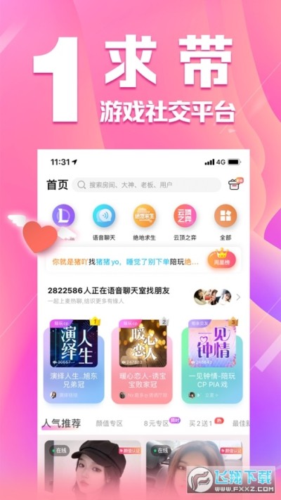 求带陪玩app是一款手机游戏陪玩平台,在这款软件上都是高颜值的用户在线陪玩,在求带陪玩app上支持语音模式,可以直接语音互动,而且还能同城交友,感兴趣的快来试试吧!