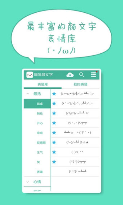 1.史上最丰富最完善的颜文字表情库,超过其他一切表情应用;