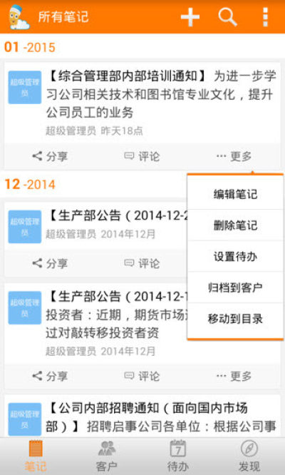 利用笔记本、客户本和标签来对客户资源、工作笔记、工作记录和其它文件来进行分类,多维分类管理,资源整理更容易。