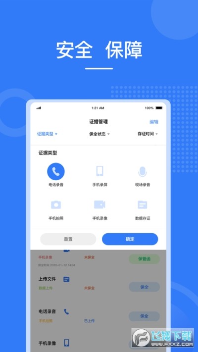 使用手机的录屏功能记录手机操作过程和内容(可根据需要开启麦克风)并形成视频文件,将该视频文件的内容、生成时间等信息固定为证据的功能。(对于输入密码涉及个人隐私的过程软件将自动通过黑屏或静止方式进行保护)