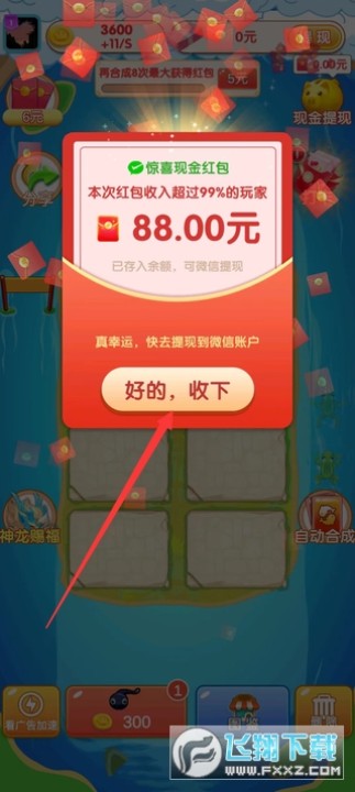 3、完成关卡不但能获得获得游戏里的奖励,还很有可能获得各种现金红包的奖励,大量的红包等你获得。