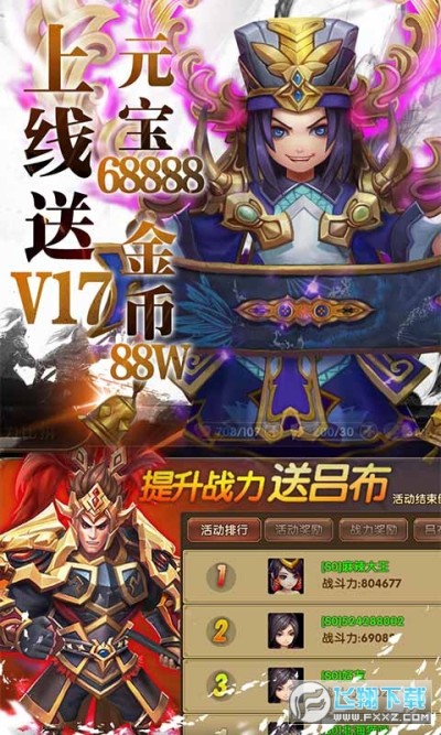 上线送V17、元宝68888、金币88W!
