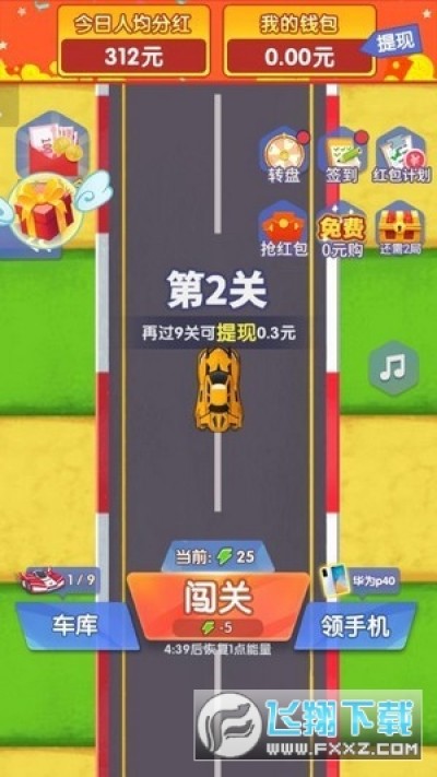 1、驾驶豪车加入赛车竞技,通关得红包,看看你能闯多少关;