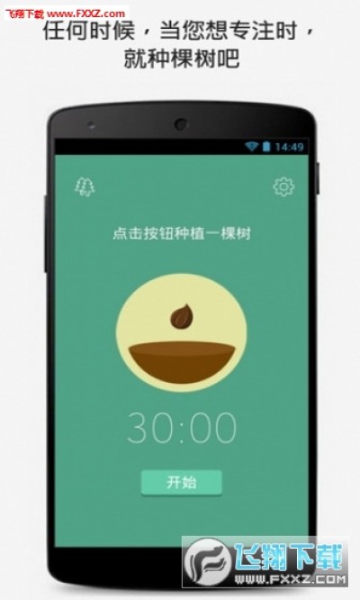 Forest app算是一款有趣的健康软件吧,在你装上Forest App的时候,它会在你的手机上种下一颗种子,这颗种子在30分钟内会长成大树,如果你在这其间使用了手机(接打电话除外),树就会枯萎。