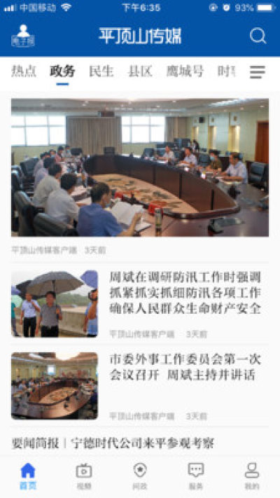 新闻首页按照推荐、滚动、要闻、政务、市县、看平顶山等地区最新新闻资讯