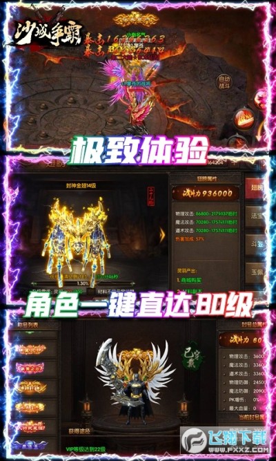 3、角色一键直达80级,跳级爽快畅玩;还赠送封号君临天下;