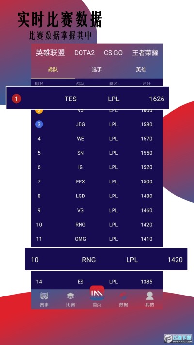电竞热门联赛、战队、选手资料库。包含联赛参赛队伍情况、各战队综合数据,选手参赛记录、使用英雄情况等资料,细致了解各俱乐部近期动态、综合实力,帮您理性分析赛果!