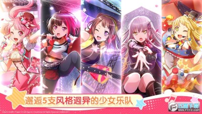 游戏中共有5支风格独特的少女乐队登场:花咲川女子学园组建的乐队Poppin’Party,身怀高超技艺的本格派组合Roselia,青梅竹马五人奏响的正统系少女摇滚乐队Afterglow,因事务所意向而诞生的偶像组合Pastel*Palettes以及把“将微笑洒满整个世界”作为目标的Hello、Happy world。