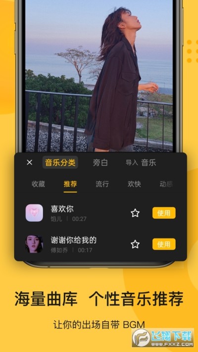 智能配乐、智能专场功能,分别可以自动进行匹配何时的音乐、匹配不同节奏点的剪辑、转场;
