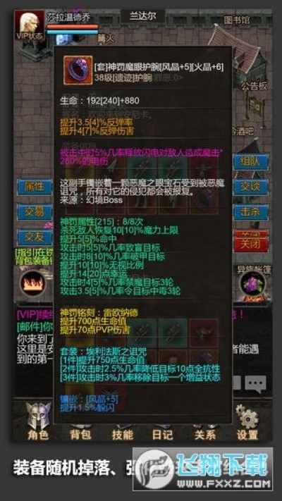 在游戏内装备分为普通装备,带有一定属性的魔法装备,以及带有强大魔法属性与隐藏属性的遗迹装备,这些装备分布在野外、幻境、世界BOSS身上;同时在游戏里打怪还可以获得凝练材料如木头、铁矿、头骨、龙晶等,在铁匠铺使用这些材料可以为装备凝练额外的魔法属性,每件装备可以凝练8次,根据凝练材料不同最终可以获得丰富独特的装备属性;另外装备还可以通过镶嵌元素宝石、珠宝进行进一步提升,以及与强大的灵魂石链接打造灵魂套装等,满足各种不同的追求;