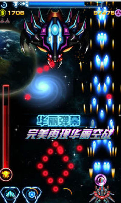 3、超级必杀覆盖全场,面对强大的邪恶BOSS你可敢一战; 电影级高清场景配合紧张刺激的战斗、超爽的爆炸让你深陷其中,感受最真实的太空战斗体验!!