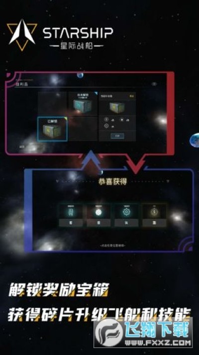 3、解锁奖励宝箱,获得碎片可以用来升级你的飞船和技能;