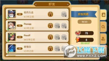 好友列表可看到所有的好友及在线情况,并且可以赠送友情之匙,攒齐10个友情之匙可以去英雄坛进行【友情召唤】,随机召唤2-5星英雄。