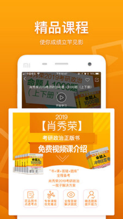 真学app是一款考试备考利器。通过专业的辅导教材,结合app中配套的肖秀荣考研政治、李林考研数学、考研英语等正版书籍增值服务视频课程,帮助考生解决学习、听课、练习、答疑等备考过程中的关键环节,是莘莘学子的备考好帮手!