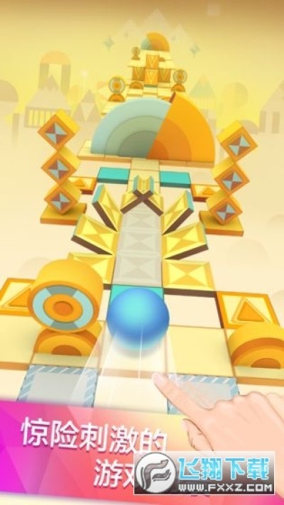 该游戏是由开发商 Turbo Chilli Pty Ltd 推出的作品,虽然是一款休闲游戏,但玩起来远比很多竞技类游戏都让人神经紧绷,游戏节奏非常的快,共有五个开放关卡,每个关卡都有不同的主题,温婉而带有韧性的第一章,充满神秘感与冒险气息的第二章,暗流涌动踏入丛林的第三章,紧张诡秘而机械的第四章,以及红黑碰撞的烈焰地狱终章。每个主题除了场景风格会有巨变以外,音乐也是风格也是完全不一样的,在这里不得不说这款游戏的背景音乐真的非常的棒。虽然画面与音乐不简单,但是游戏的玩法并不难,玩家只需要通过按住屏幕滑动,控制一个小球闯入一个充满障碍和奇异地形的天空之城,不过若稍有不慎碰上障碍物或是从平台坠落,小球就会完全粉碎,游戏就会结束。而游戏在障碍的设置上也十分的有意思,玩家不知道什么时候会有从平地冒出的方块,转动的锤状方块,崩落的地板等等,这些障碍都是对玩家的考验,毕竟游戏不会让谁轻易通关,不过这些画面的效果都相当不错,也许各位玩家会有兴