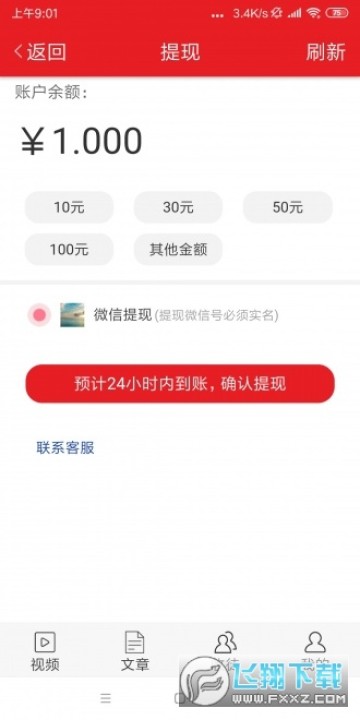 3、海星资讯永久满10元可提现,支持申请提现到微信上面,提现24小时内到账