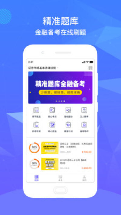 精准题库app是一款手机刷题学习类的软件,这款软件上有超多的题库版块,在这里可以直接选择题库练题,也有模拟考试的版块,精准题库app上也能查看自己学习的结果,快来试试吧~