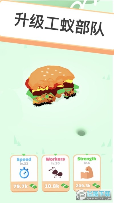 1、扮演蚂蚁,收集更多的资源,不断升级你的蚂蚁和蚁丘。