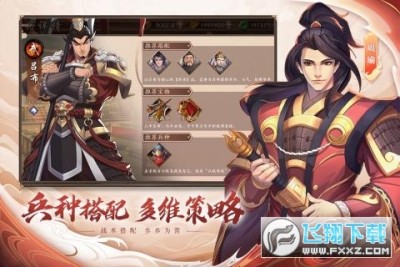 4、海量的搭配,构筑不一样的阵容。丰富兵种,骑兵、枪兵、弓兵、戟兵、井阑、投石车、冲车。多种武将类型,霸者、儒将、武将、军师、谋士、侍郎。丰富的兵法、策略、特技、宝物,变化多端。