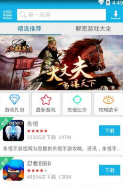 第一应用应用程序,一个非常好的应用程序商店。它提供了许多受欢迎的游戏资源。无论是国内游戏还是国外游戏,都可以在这里找到各种游戏和软件。预约即将推出的新游戏,各种游戏策略和游戏玩法将及时更新!