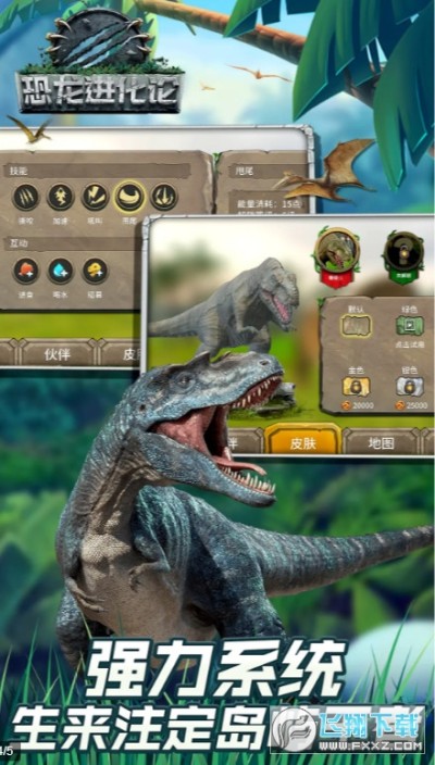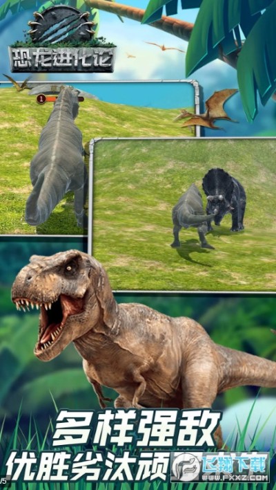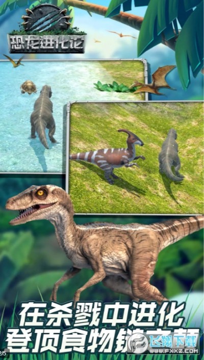 《恐龙进化论》是一款模拟恐龙的真实生存游戏,在这里,你将作为恐龙加入到岛屿的生存竞赛中!你可以体验作为恐龙生存所需要的一切,追捕、猎食、寻找水源,只为了活下去!活下去的同时,不断成长,与强敌抗争,在生存竞赛中胜出。强力系统辅助,你生来就是王者!