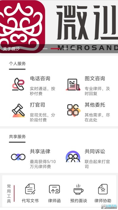 微沙app是一款法律服务平台,这款软件主要是为各位用户提供共享法律服务,在微沙app上各位用户可以在线选择相关的法律信息,还有各种相关的咨询服务,非常全面,需要的用户快来试试吧!