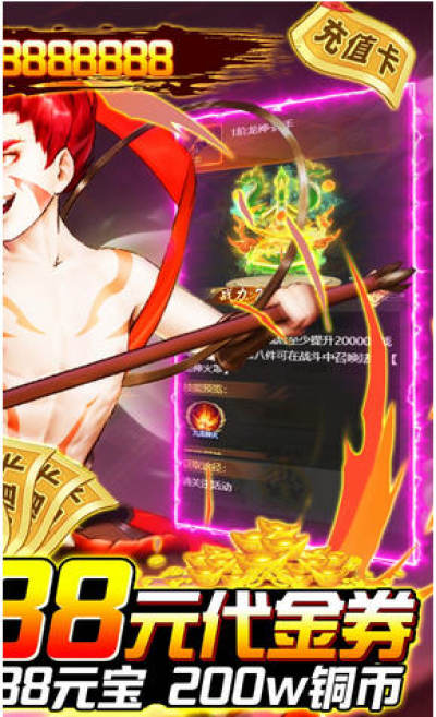 《朝歌封神录-送3888代金券》是一款结合封神演义&山海经传说的神话仙侠游戏,上线福利赠送SVIP6,18888元宝,200w铜币,登录可领总额3888元代金券真充,可激活充值活动和VIP经验;更有丰厚独家平台福利礼包助力,致力打造高自由度东方奇幻仙侠大世界,创新打造神将、骑宠策略搭配玩法,还有大跨服PVP排位赛,争夺最强霸主,畅享激战快感; 游戏画风结合山海神话与国风二次元画风,体验游戏如同遨游在山海神话的玄幻世界中,点神将,收妖兽,炼神器,披荆斩棘历万劫千难,羽化成仙封神留名。