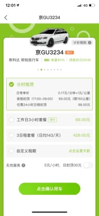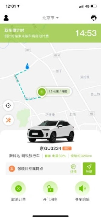 果氪行作为共享出行的优质服务提供商,采用了车辆无人值守,取还车手机操作,全程自助出行的模式,用户可以根据个人用车需求预约出行服务。